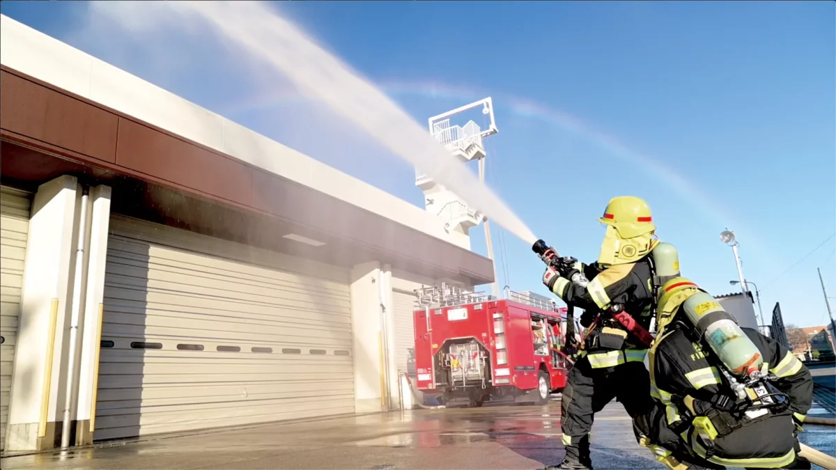 現地で消防官への演出を交えつつ、出動シーンや放水、救助活動などを撮影。迫力ある映像表現で消防署の臨場感と信頼性を伝えます。